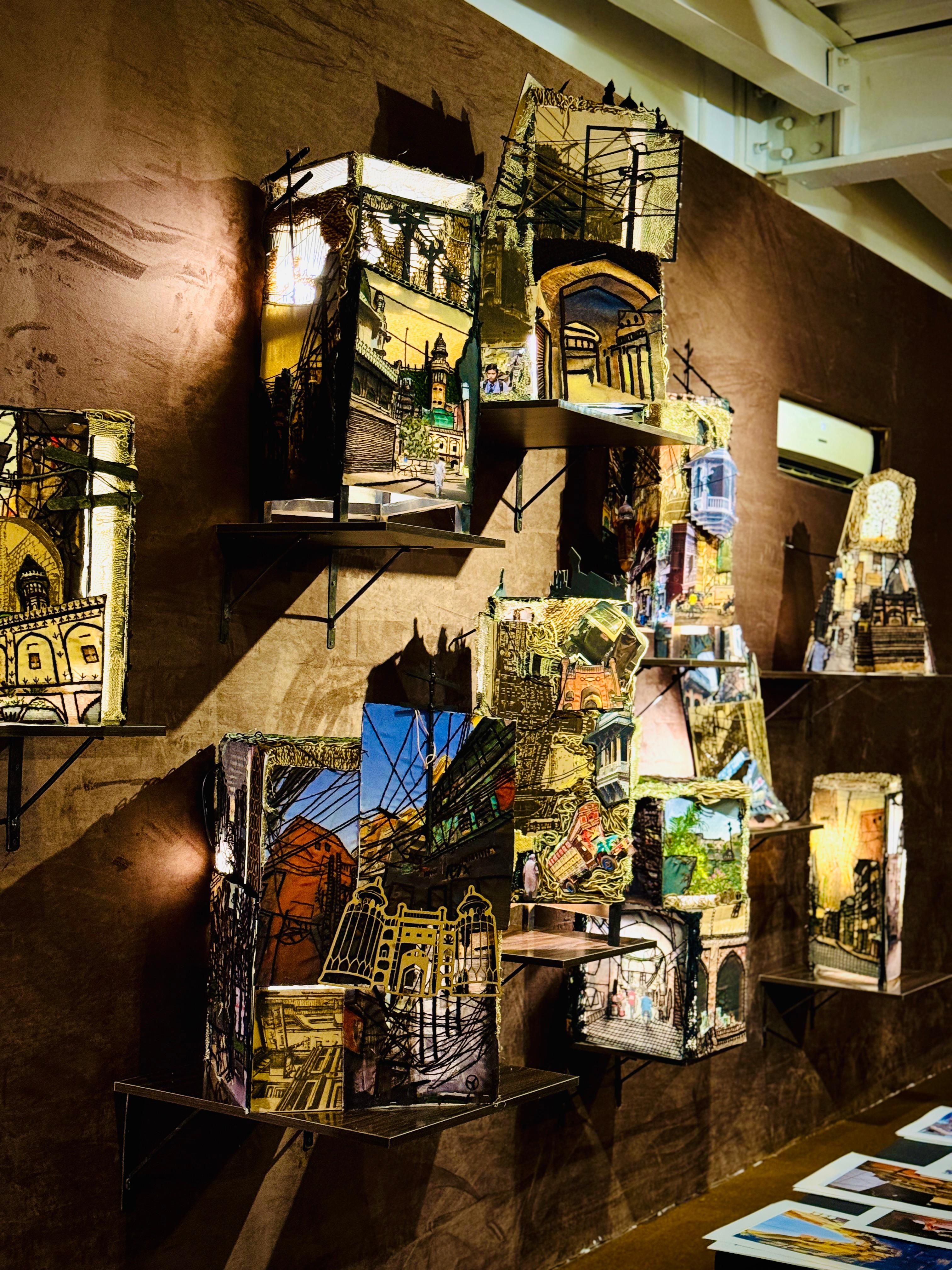 My work is an investigation of the complexity of the infrastructure within the Walled City of Lahore and echoes emotional, physiological, entanglements. The knotted electrical wires; neglected, dangerous, explosive yet still functioning reflect the state of the mind: drained, strained, yet still going. This story is of emotional turmoil. It mirrors my inner battles, my struggles where amid the sea of chaos, I have struggled to keep going . By recording and interpreting these city entanglements as a symbolic representation of my mental state, I aim to explore the gravity of my emotional exhaustion. The city’s visual aura is reduced to a language which conveys resilience, survival, and unvarnished reality. There is no romanticizing of the disorganization but an attempt to learn about it, to decipher it by way of texture, contrast, and material. This is a story of abandonment and rebirth; of survival and hope. This is a metaphor to the pain and fatigue that we carry within ourselves and project it on to our surroundings and struggle to overcome it